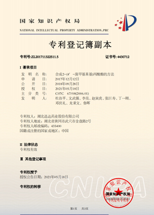 公司擁有一支高素質(zhì)科研隊伍,具備專業(yè)而高效的研發(fā)能力。近幾年,共取得科技成果30項,其中9項獲國家發(fā)明專利,2項獲湖北省科技進步獎,開發(fā)新產(chǎn)品8個,綠色合成、手性合成和催化等技術(shù)引領行業(yè)發(fā)展。主要銷往歐美、日本、韓國、中東、印度等40多個國家和地區(qū)。